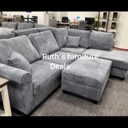4-pc Sectional Sofa With Ottoman Grey Corduroy New$490Norwalk, CA