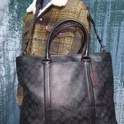 COACH PERRY BUSINESS TOTE IN SIGNATURE CANVAS, FEATURING A BLACK MONOGRAM PRINT AND TOP HANDLES #Z$160Fullerton, CA