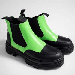 Neon Dreams Chunky Chelsea Boots – Neon Green – Size 6 Women – Festival / Coachella Ready $75Los Angeles, CA