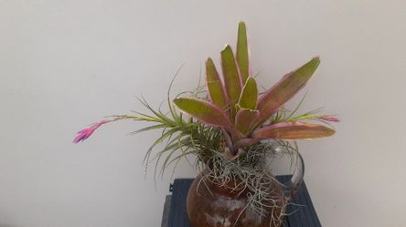 Large Pink Bromeliad thilansia planter centerpiece decor Amber glass jug vase Green thumb friendly easy care$65Los Angeles, CA