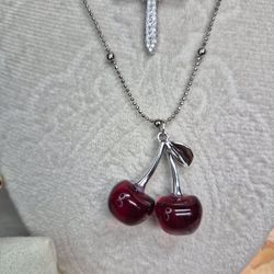Cherry Necklace 14K White Plated Gold Or Gold Non Tarnish Exelent Quality $25Palmdale, CA