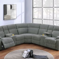 ✅️✅️4 pc dark grey corduroy fabric upholstered sectional sofa with USB plugs and ottoman✅️$425Inglewood, CA