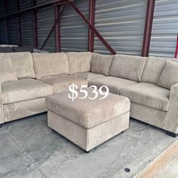 ✅️✅️ 4pc for grey corduroy fabric upholstered sectional sofa with ottoman ✅️✅️$425Inglewood, CA