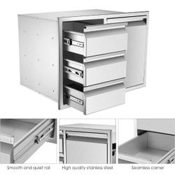 Outdoor Kitchen Drawers Combo 28x19.6x18.3 BBQ Triple Drawers with Double Trash Can Combination