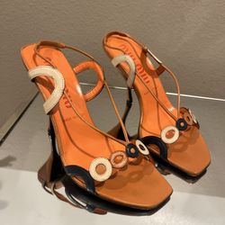 Vintage 1990s Miu Miu Circle Motif Leather Slingback Sandals$300Monterey Park, CA