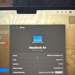 2025 MacBook Air 13.6 M4 16GB 256GB Applecare Plus 12/23/2028$799Burbank, CA
