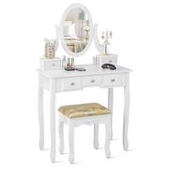 Assembled New Vanity Table Set with Rotatable Oval Mirror, Bedroom Makeup Table with 5 Drawers$75Santa Fe Springs, CA