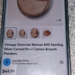 Vintage Victorian Women 800 Sterling Silver Cameo Broch Pendant $30El Monte, CA