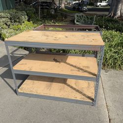 Metal frame shelving unit with wood shelves. Like new $49City Of Industry, CA