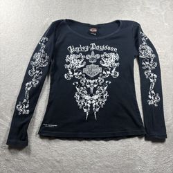 Vintage Harley Davidson Women M Black Long Sleeve Tribal T-Shirt BabyDoll USA#4A$45Long Beach, CA