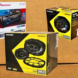 Pioneer Car Stereo Single Din System CD Bluetooth USB Am/Fm Radio Kicker DS 6.5" 2-Way & 6x9" 3-Way Coaxial Speaker 600 W Package 🚨 No Credit Needed $299Compton, CA