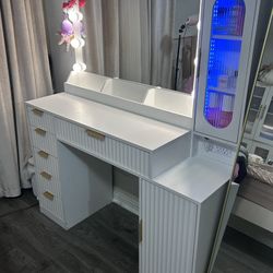 White LED Vanity Desk w/ Mirror, Power Outlet & Storage Drawers$130Montebello, CA