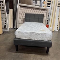 Queen Gray Wingback Button Tufted Bed w. orthopedic Mattress included $359Glendale, CA
