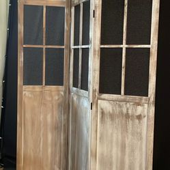 Divider 3 section folding distressed brown and white 69" tall x 53" wide when full open. Ex cond. as is pick up deliver. $150West Hollywood, CA