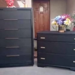 6 Drawer Upright Dresser And 3 Drawer Dresser - Both Solid Wood - Black With Gold $475Pico Rivera, CA