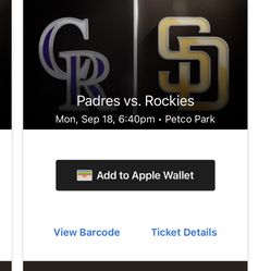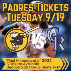 Padres Vs Rockies TONIGHT 9/19 **6 Tickets Available** $35San Diego, CA