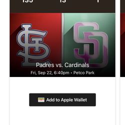 Padres Vs Cardinals Tickets$125San Diego, CA
