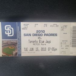 San Diego Padres vs. Toronto Bluejays 2010 ticket stub$10San Diego, CA