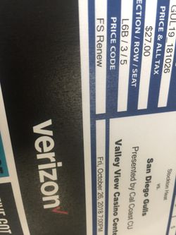 Tickets to SD Gulls Game Tonight!!$17San Diego, CA
