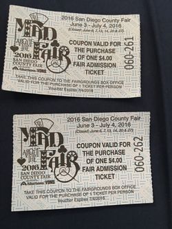 6 $4 entrance Del mar fair tickets$20Escondido, CA
