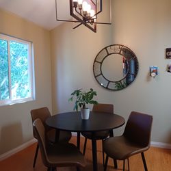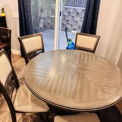 Round Wood-Look Dining Table with 4 Upholstered Chairs$250San Diego, CA