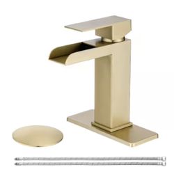 Single Handle Single-Hole Bathroom Faucet with Pop-up Drain Assembly and Deck Plate in Brushed Gold$80San Diego, CA