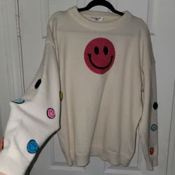 HAZEL AND OLIVE Embroidered SMILEY SWEATER