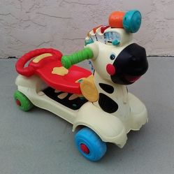 Colorful Zebra Shaped Push Walker / Ride-On Scooter Can Be Switched Over Easily, No Lights or Sound, Functional with Minor Cracks on the Plastic Body