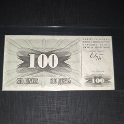 vintage 100 Dinara banknote from Bosnia and Herzegovina, issued in 1992$2San Juan Capistrano, CA