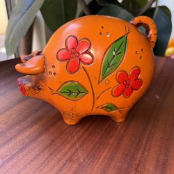 Vtg 70’s Ceramic Piggy Bank Terracotta Color Hand painted Flowers Made In Japan $65San Diego, CA