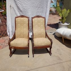 2- Victorian Antique Solid Oak Rocking Chair Floral Pattern High Back.$700San Diego, CA
