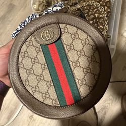 Gucci Ophidia Mini Round GG Supreme Canvas Shoulder Bag Web Stripe Gold Chain$650San Diego, CA