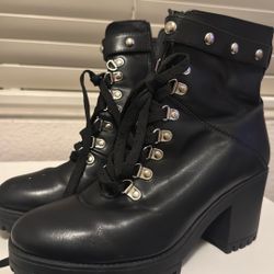 Black Studded Platform Combat Boots - Chunky Heel - Women's 8$30Escondido, CA