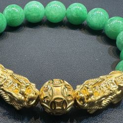 24K Hard Gold | w/Premium Natural Green Jade Beads Bracelet $1,850San Diego, CA