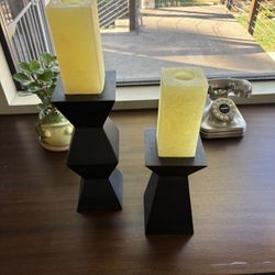 Candle Holders And Candles, West Elm, Solid Wood, Dark Brown$50San Diego, CA
