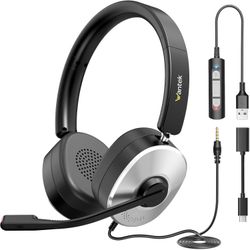 USB Headset with Microphone for PC, USB-A/Type-C/3.5mm Computer Headset with Noise Cancelling Mic, Wired On-Ear Headphones for Home Office, Work, Lapt$10San Diego, CA