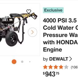 Dewalt 4000 PSI Presser Washer$500Murrieta, CA