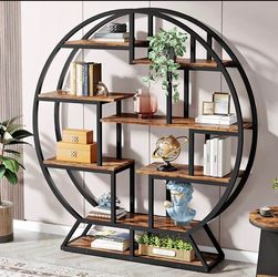 Round Bookshelves Etagere Bookcase, 63 Inch Industrial Wood Book Shelf with Staggered Shelves, Rusti$80Temecula, CA