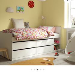 White Bed With Four Storage Drawers- Twin Size (with Mattress)- IKEA slaekt$50Vista, CA