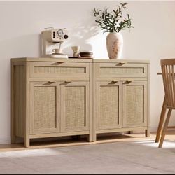 Set of 2 Sideboard Buffet Storage Cabinet, Rattan Accent Cabinet with Doors and Drawer, Boho Credenz$175Temecula, CA