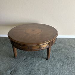 Elegant Round Wood Coffee Table with Inlaid Top & Storage Drawer$225San Diego, CA