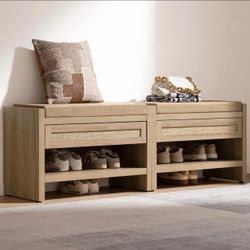 Set of 2, Rattan Shoe Bench Entryway Bench with Storage Drawer and Linen Seat Cushion, Farmhouse Boh$120Temecula, CA