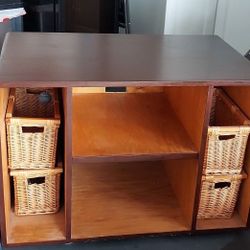 Solid oak TV stand with storage baskets$30Encinitas, CA