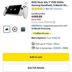 ROG Xbox Ally 7" FHD 120Hz Gaming Handheld$350Whittier, CA