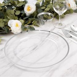 Goodluck 12 Inch Disposable Charger Plates Plastic, 100 Pack Plastic Clear Charger with Silver Rim for Dinner, Wedding, Party Reg. Retail $139.99$69Downey, CA