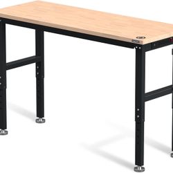 WORKPRO 60" Adjustable Workbench, Rubber Wood Top Heavy-Duty Workstation, 2000 LBS Load Capacity Hardwood Worktable with Power Outlets, for Workshop, $160Rosemead, CA