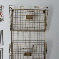 Metal two-pocket wall organizer, Gold$10Burbank, CA