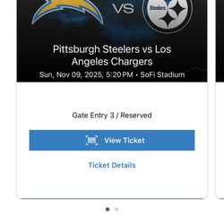 Chargers Vs Steelers Tickets 11/9$400Carson, CA