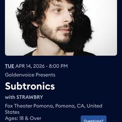 (1) Balcony Ticket For $115 For Subtronics Pomona Show 04/14$115Covina, CA