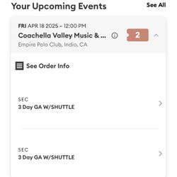 Coachella Week2 3day GA With Shuttle Pass$1,400Montebello, CA